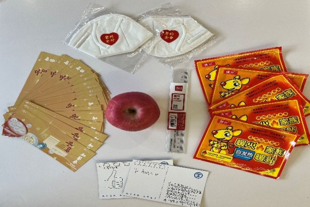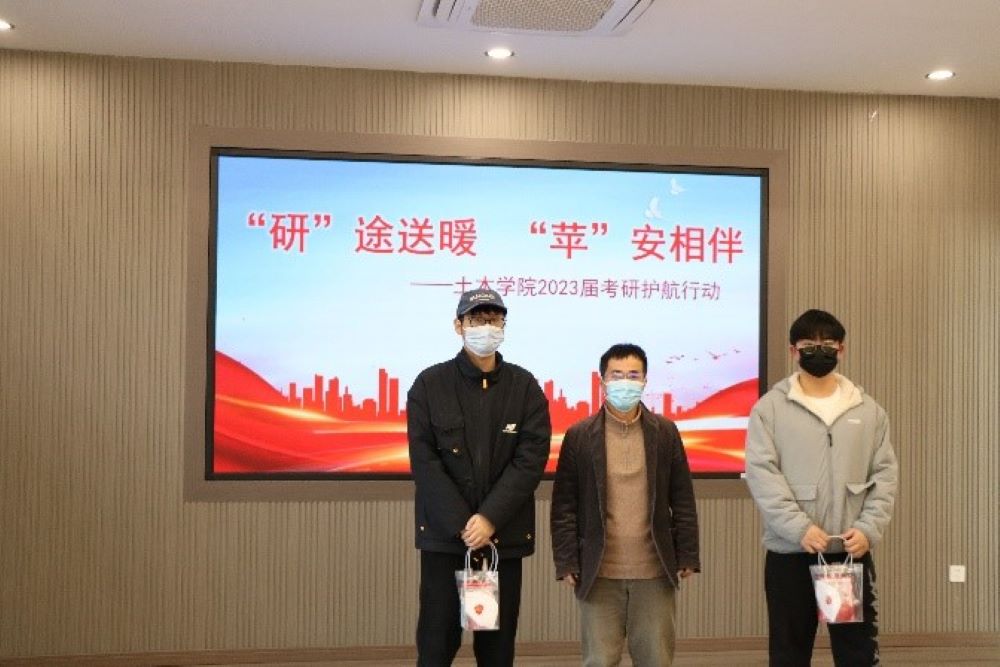 活动伊始,刘志强代表学院向正在备考的学子表达了慰问、鼓励和期望之情,他充分肯定了同学们克服困难、脚踏实地、不畏艰难险阻、勇于追求理想的精神,他希望各位同学踔厉奋发,勇毅前行,不负青春韶华,实现远大理想。随后,院领导一起为考研学子分发带着满满美好祝愿的“考研加油包”,其中包含寓意“暖”意洋洋的暖宝宝、“罩”气蓬勃的口罩、“苹”安上岸的苹果、“百尺竿头更进一步”的直尺、冬至夜加餐券以及来自辅导员、学弟学妹们为2023届考研学子手写的祝福卡片。