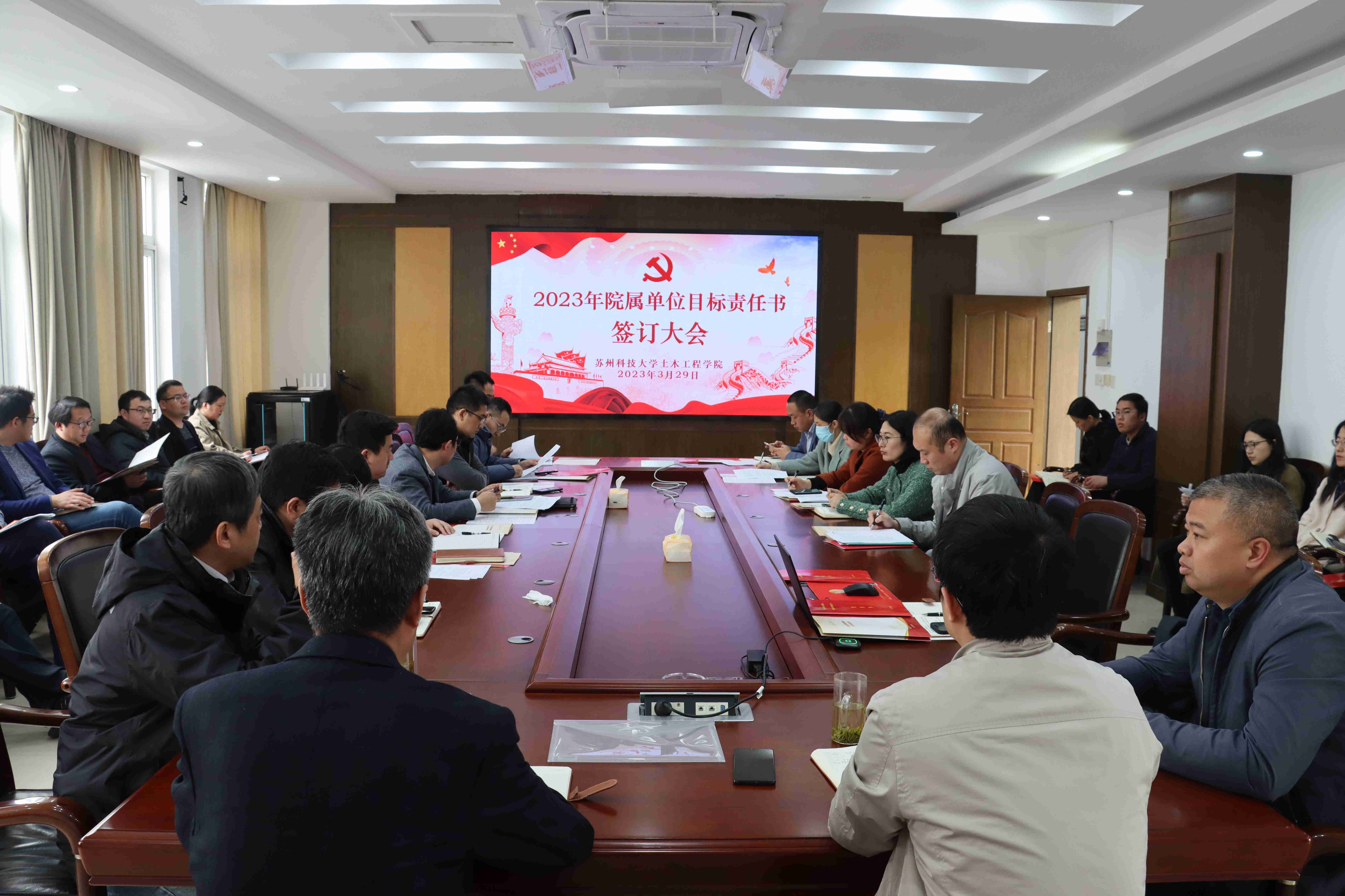 在2023年目标责任状签订仪式上,学院领导对各自分管工作的目标任务进行了介绍。赵宝成强调,各单位(部门)领导要团结带领师生勠力同心、砥砺奋进,扎实推动各项目标任务稳步推进,为推动学校“江苏高水平大学”建设目标奠定坚实基础,作出重要贡献。刘志强强调,希望全院干部认真履行主体责任,着力加强队伍建设,强化落实服务保障,团结师生共同奋斗,以更加坚定的信念、更加旺盛的斗志、更加扎实的作风,解放思想、开拓创新,真抓实干、攻坚克难,团结带领全院师生为圆满完成年度目标而努力奋斗。
