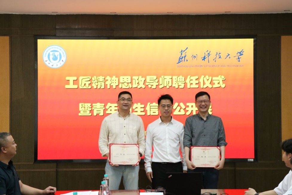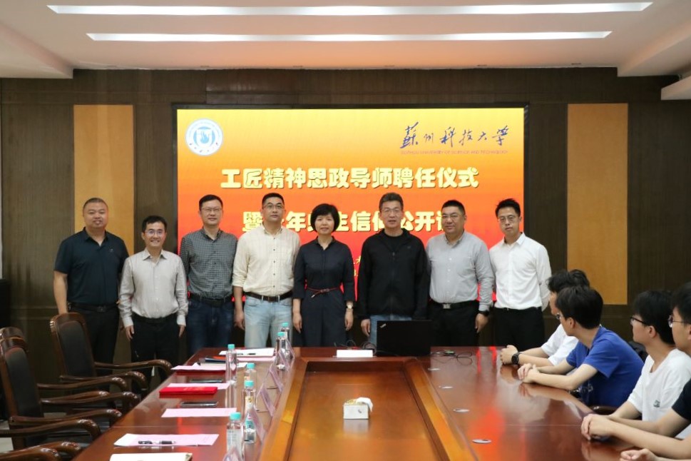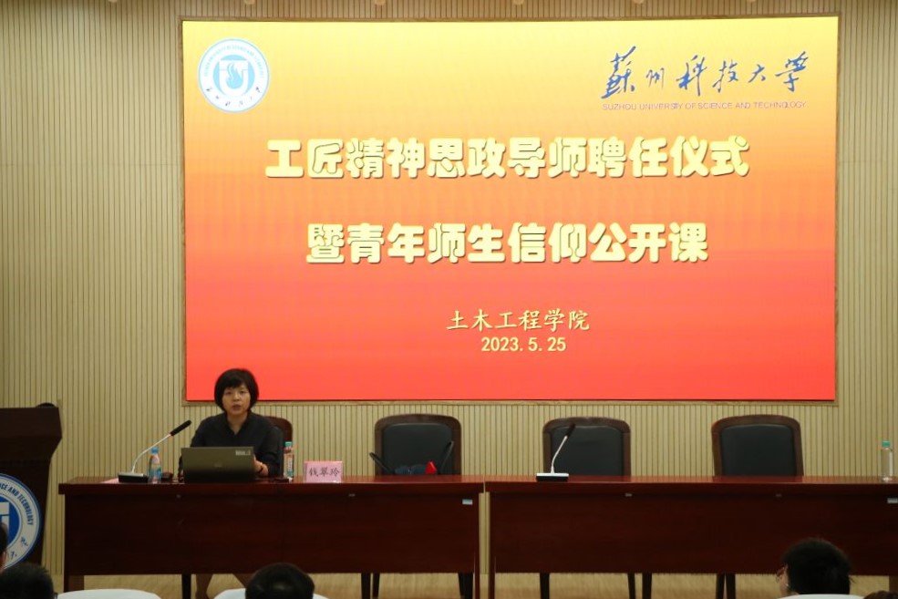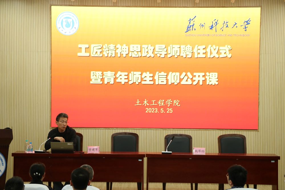 作者:王谦菲 图片作者:李之坤 来源:狂人小说 发布日期:2023-05-26 浏览:次为了大力弘扬劳模精神、劳动精神、工匠精神,培育青年学子的职业精神和职业素养,5月25日上午,“导师领航,匠心筑梦”工匠精神思政导师聘任仪式暨青年师生信仰公开课在狂人小说 二楼会议室、报告厅举行。江苏省劳动模范董建军,苏州市劳动模范钱翠玲,校党委学生工作部、学生工作处处长张承祖,校团委副书记(主持工作)黄凯,院党委书记刘志强,院党委副书记兼副院长刘建峰,院建工系党支部书记韦俊,院党委书记助理兼道岩系党支部书记陆勇,全体辅导员、学生代表参加了此次活动。会议由刘建峰主持。