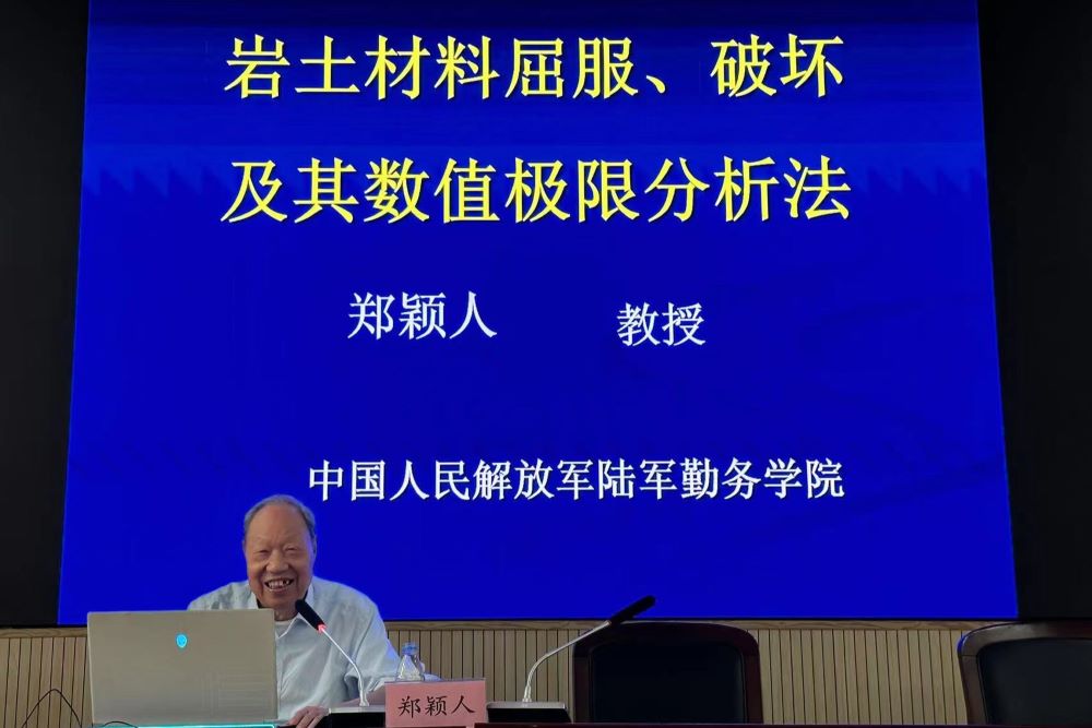 作者:张鑫蕊、陆勇 图片作者:杨越群 发布日期:2023-07-05 浏览:次6月29日,狂人小说 邀请到中国人民解放军陆军勤务学院郑颖人院士,为狂人小说 师生做了题为《岩土材料屈服破坏及其数值极限分析方法》的报告。校党委书记姜朋明出席并主持了本次院士报告会,狂人小说 书记刘志强、常务副院长赵宝成、副书记兼副院长刘建峰、副院长陈鑫以及岩土工程方向全体青年教师、研究生参加了本次报告会,另有来自周边部分高校(苏州大学、江南大学、常州大学、江苏科技大学)的多位教师参加了本次报告会。
