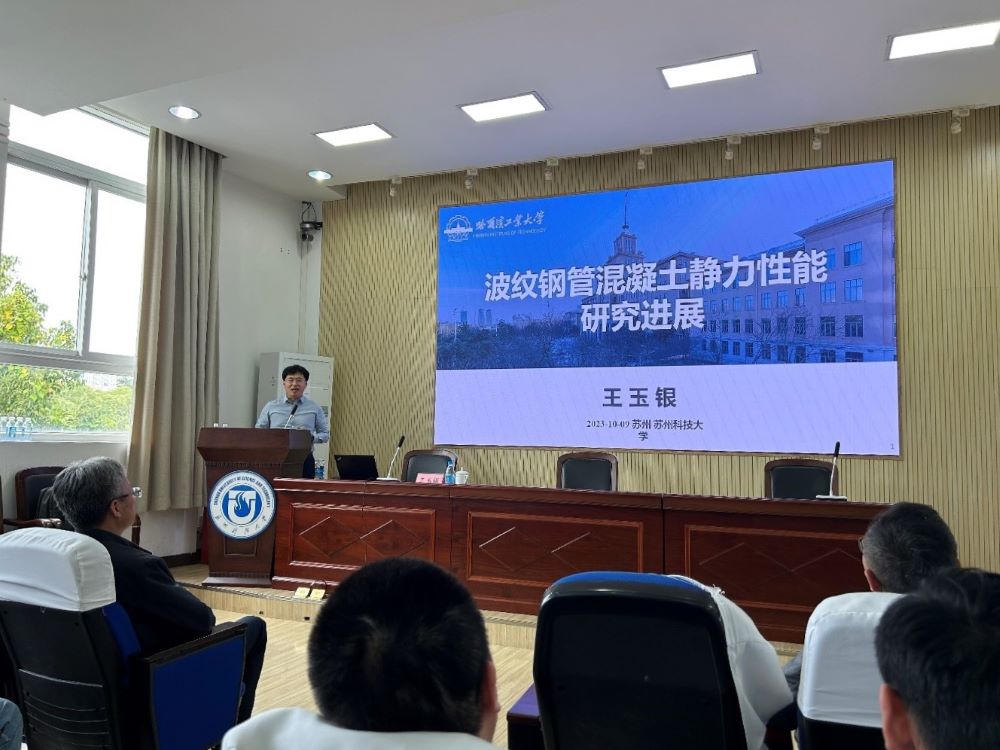 报告会上,王玉银教授介绍了团队近年来对波纹钢管混凝土进行的研究工作,包括波纹钢管的材料性能、几何特点、波纹钢管混凝土的受力机理及波纹钢管混凝土柱受弯、受剪、受扭力学性能等。报告深入浅出,现场学术氛围热烈,在提问环节,多位参会教师和研究生针对报告内容与王玉银教授进行了深入交流和探讨。