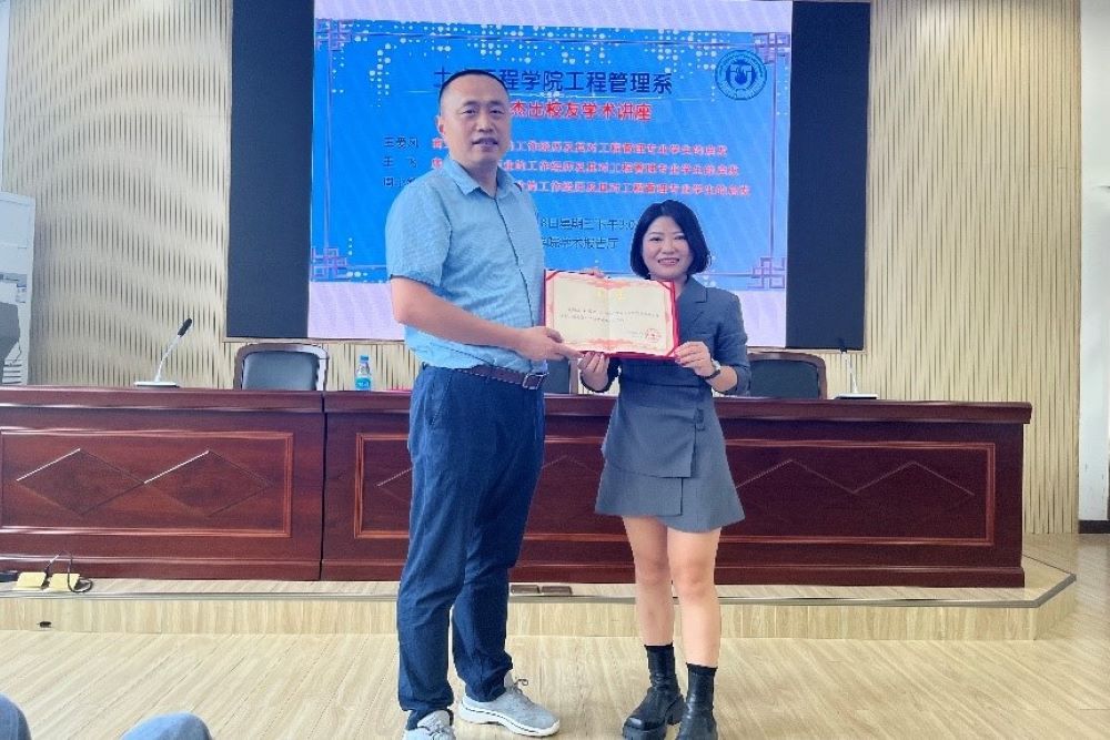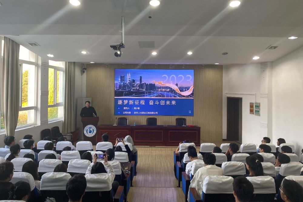 周小敏进行“市政工程施工行业的工作经历及其对工程管理专业学生的启发--追逐新征程,奋斗创未来”的主题讲座分享。他介绍了市政工程的主要类型、市政工程行业的发展状况,分享了自己就业、工作、创业的过程与经验,勉励在校大学生多参加工程实践、学会坚持、学好工程管理专业的四大知识体系、提升自己的竞争力与综合素质。