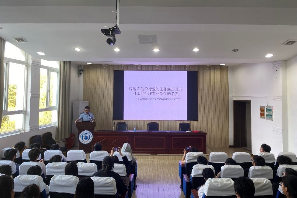 王飞进行“房地产估价行业的工作经历及其对工程管理专业学生的启发”的主题讲座分享。他结合自己参与的工程案例介绍了房地产估价的工作内容与工作流程,阐述了自己在大学时期与毕业后对工程管理专业的不同理解。勉励同学养成多看书、爱看书的好习惯,并建议同学尽早明确自己的职业生涯定位。