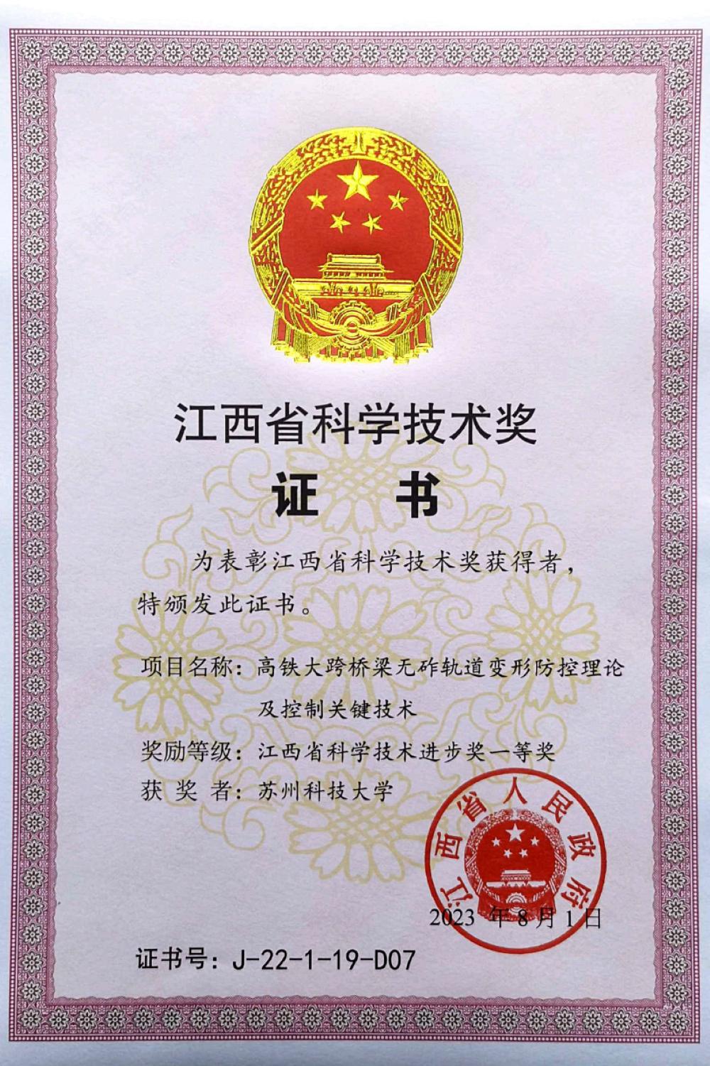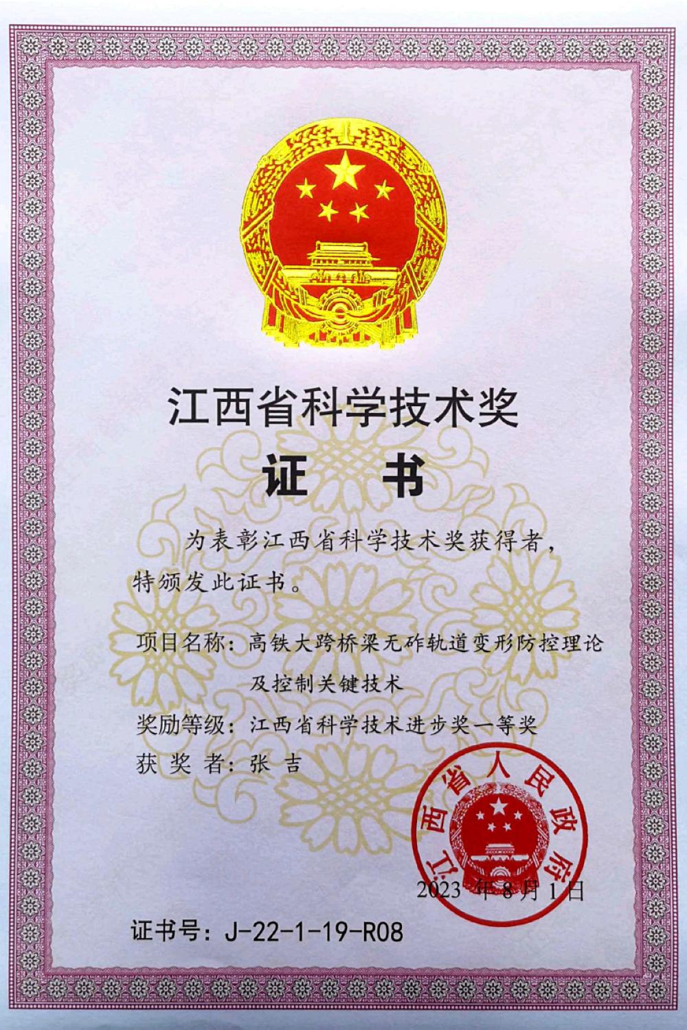 作者:申燕 来源:狂人小说 发布日期:2023-10-26 浏览:次近日,江西省人民政府颁发了2022年度江西省科学技术奖。由昌九城际铁路股份有限公司牵头,狂人小说 狂人小说 张吉博士参与联合申报的《高铁大跨桥梁无砟轨道变形防控理论及控制关键技术》荣获科技进步一等奖。