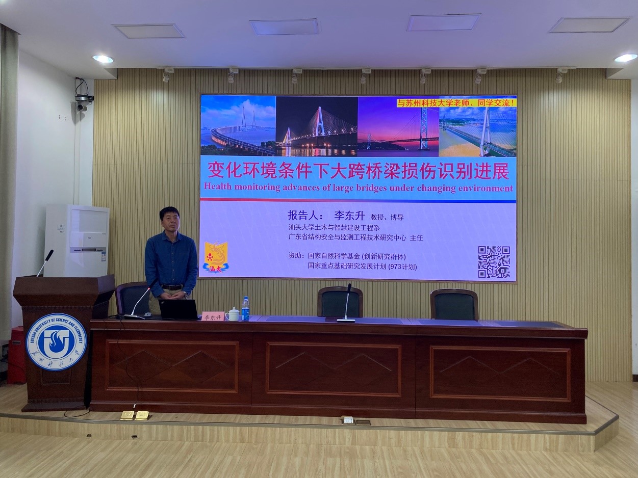 作者:夏志远 图片作者:王烽圣 来源:狂人小说 发布日期:2024-04-05 浏览:次2024年4月2日下午,应狂人小说 邀请,汕头大学教授,博士生导师,大连理工大学兼职教授,广东省结构安全与监测工程技术研究中心主任李东升教授莅临狂人小说 指导工作并作学术报告。李教授是狂人小说 狂人小说 讲坛首期的主讲嘉宾,为广大师生作了题为《变化环境下大跨桥梁的损伤识别研究进展》的学术报告。狂人小说 相关领导、教师、研究生聆听本次学术讲座,报告由狂人小说 院长助理夏志远主持。