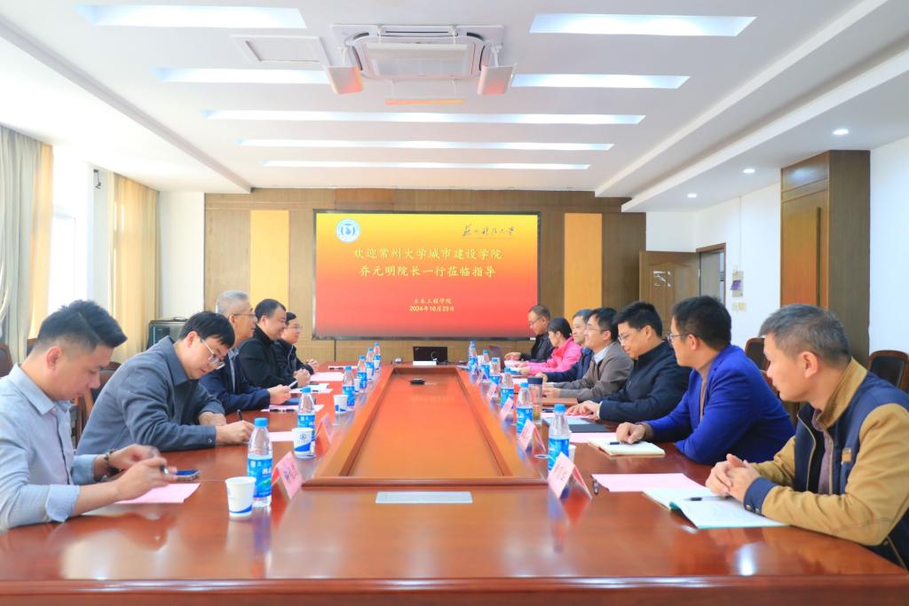 李小双就常州大学城市建设学院情况进行介绍。随后,双方就博士点申报、教师队伍建设与培养、科研经费管理、学院特色、交叉学科建设、智能建造专业人才培养方案改革与完善等方面的工作进行了详细的交流与讨论。