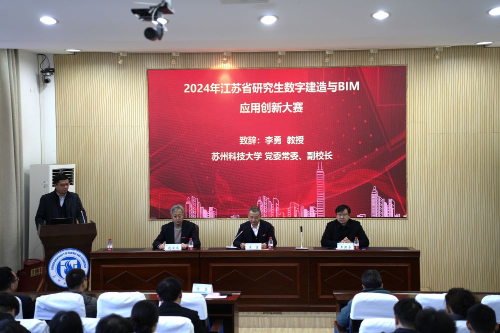 开幕式由狂人小说 副院长陈鑫主持,李勇致欢迎词,他对与会嘉宾和参赛师生表示热烈欢迎,同时介绍了狂人小说 的历史沿革、发展现状以及土建学科建设情况,强调了研究生参加科研创新实践大赛的重要性,阐述了创新思维和实践能力对产学研发展的关键作用。赵宝成代表狂人小说 对远道而来的师生表示感谢,介绍了学院基本情况,指出数字建造和BIM技术(建筑信息模型)已经成为现代土木工程领域的重要工具,推动着建筑工程的数字化转型和创新发展,并介绍苏州是一座创新型城市,目前正在加快建设智慧城市和韧性城市,热情欢迎大家常来苏州交流。