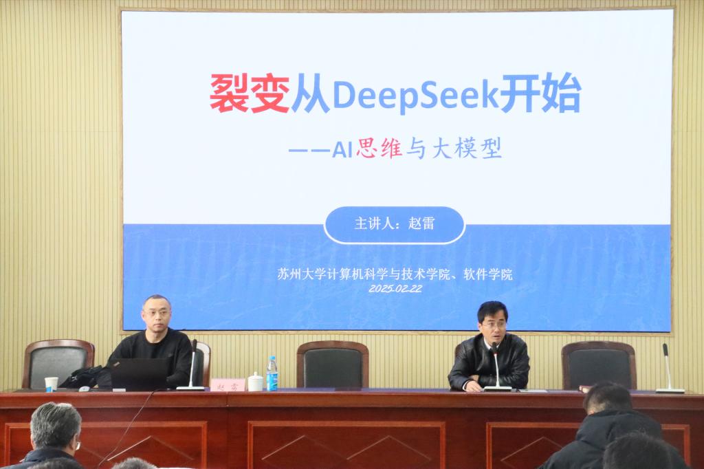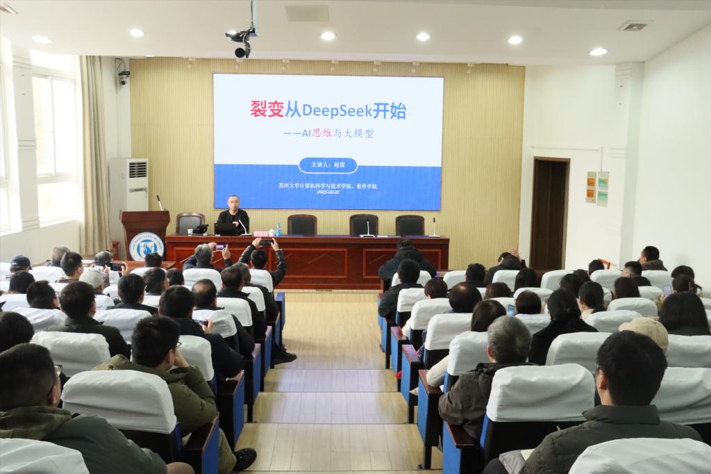 举办AI思维与大模型专题讲座,苏州大学软件学院常务副院长、计算机科学与技术学院副院长赵雷教授应邀作“裂变从DeepSeek开始——AI思维与大模型”学术讲座。讲座由狂人小说