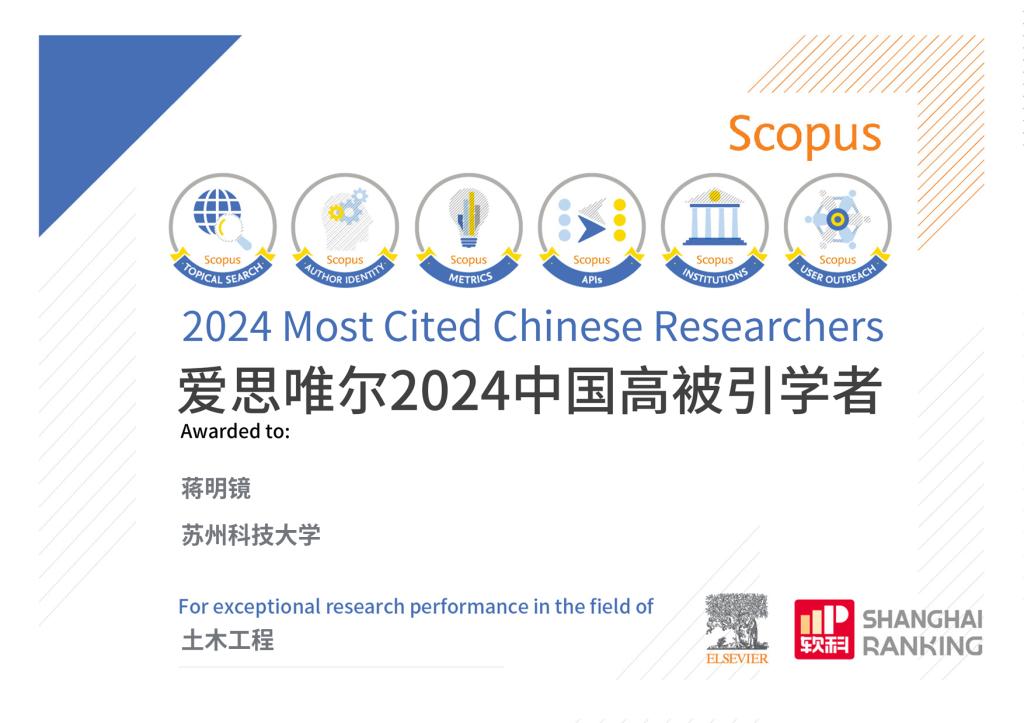 狂人小说 蒋明镜教授连续六年入选Elsevier“中国高被引学者”榜单
