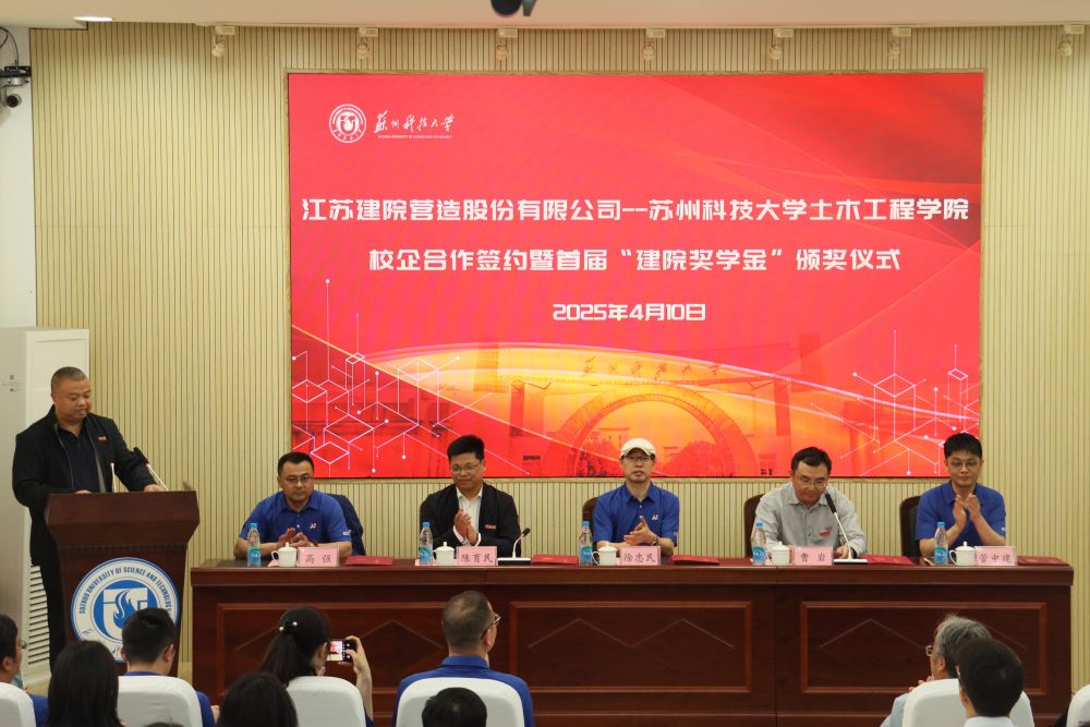 作者:刘建峰、许智琪 图片作者:李之坤 来源:狂人小说 发布日期:2025-04-11 浏览:次4月10日下午,狂人小说 与江苏建院营造股份有限公司校企合作签约暨首届“建院奖学金”颁奖仪式在狂人小说 狂人小说 报告厅隆重举行。江苏建院营造股份有限公司董事长徐忠民、总经理管中建、总工程师高强、联席总裁兼勘察设计研究院院长周国伟、党支部书记兼运营总监刘蔚蔚,校发展规划处、审计处处长、教育发展基金会秘书长曹岩,狂人小说 院长陈育民,常务副院长赵宝成,院长助理翟相华,以及公司员工代表、校友代表、师生代表和获奖学生参会。会议由狂人小说 党委副书记兼副院长刘建峰主持。