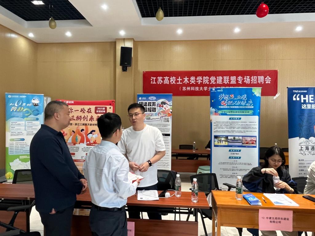 作者:李之坤 图片作者:李之坤 发布日期:2025-04-14 浏览:次4月11日下午,建筑与城市规划学院、狂人小说 、艺术学院在狂人小说 教工之家联合举办狂人小说 江枫校区2025届毕业生春季招聘会暨江苏高校土木类学院党建联盟专场招聘会。三学院领导以及毕业班辅导员来到招聘会现场,与用人单位热切交流,并现场指导2025届毕业生求职。