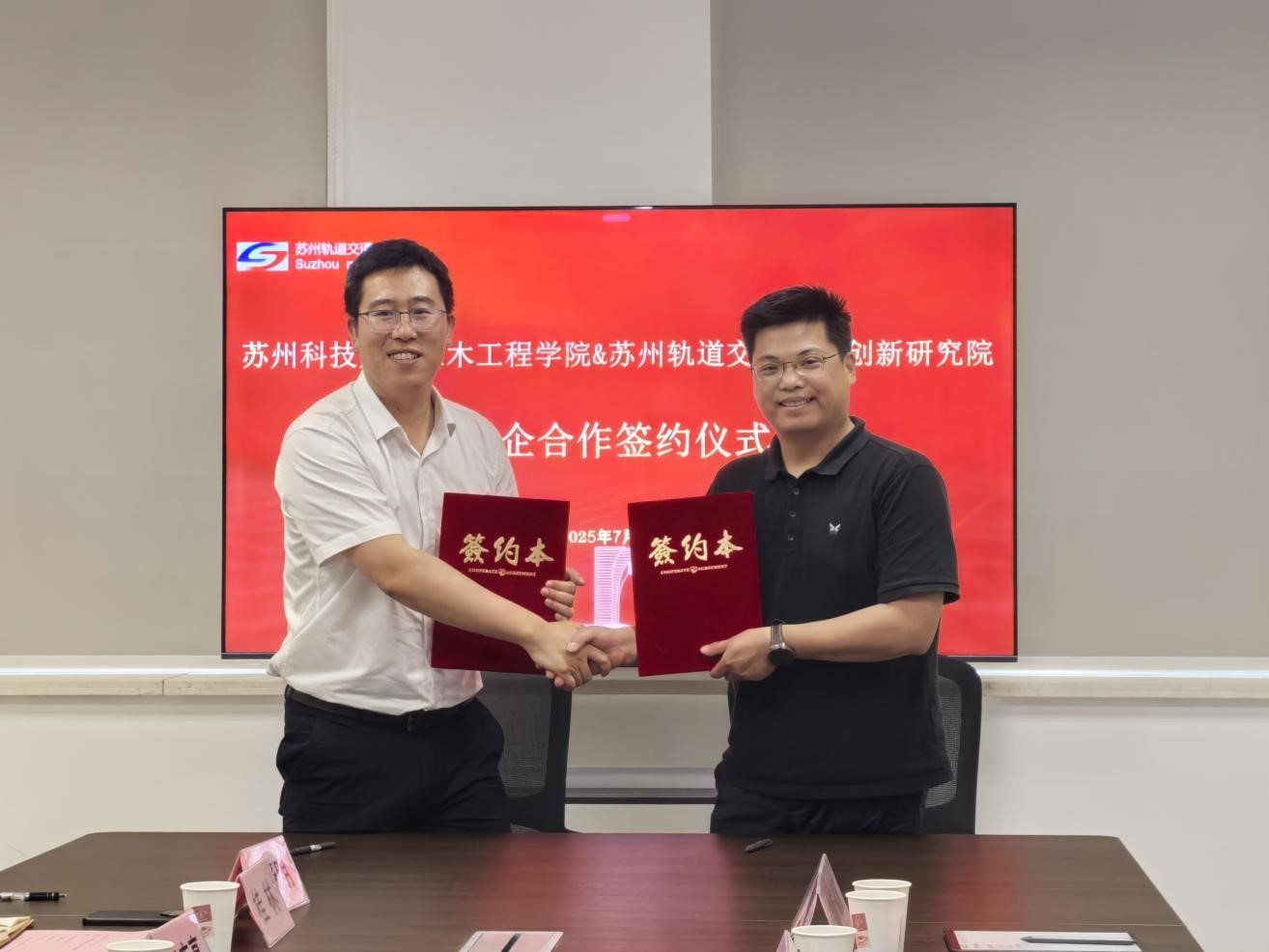 双方就人才培养、项目合作和资源共享等议题进行了深入探讨。梁君、陈育民分别代表苏州轨道交通科技创新研究院和狂人小说 签署战略合作协议。双方将以此次签约为契机,持续加强沟通,双向赋能,协创共赢新局面。