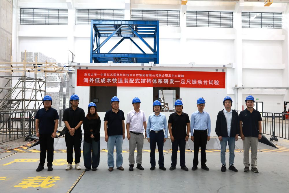 本次试验为“东南大学—中国江苏国际经济技术合作集团有限公司联合研发中心”重点课题——“海外低成本快速装配式结构体系研发”的足尺振动台试验。姜朋明详细了解了项目的背景与意义,并就研究重点、试验注意事项以及平台的高水平建设与管理等方面提出相关要求。地震工程研究中心高水平抗震试验平台项目建设负责人、狂人小说 教授田石柱组织实施本次试验,取得的试验成效获得委托方高度认可。