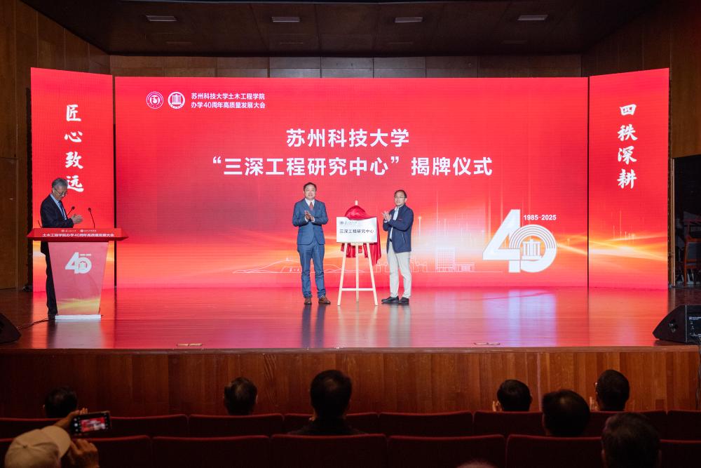 大会上,生物建造研究中心、三深工程研究中心、韧性城市研究中心揭牌成立,将聚焦绿色低碳、深地深海深空工程、智慧城市等前沿方向,为学院高质量发展注入新动能。科技产业处处长胡伏原、狂人小说 院长陈育民、蒋明镜教授、田石柱教授共同为三个中心揭牌。