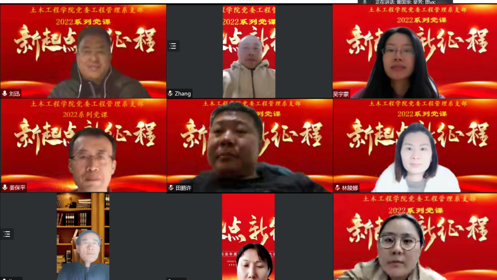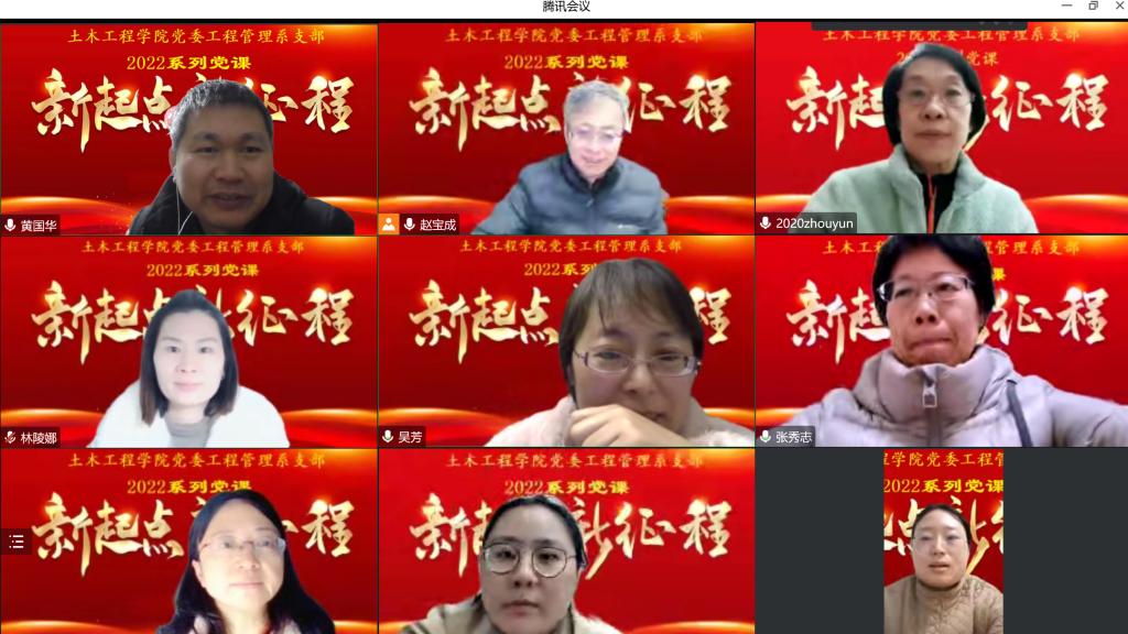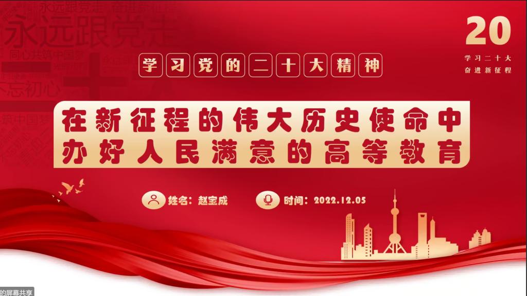作者:田鹏许 黄国华 发布日期:2022-12-06 浏览:次为深入学习贯彻党的二十大精神,全面加强对党员学习活动的组织领导,推动党的二十大精神入脑入心,2022年12月5日晚8时,狂人小说 常务副院长赵宝成通过腾讯会议为工程管理系教工党支部全体党员宣讲党的二十大精神,讲授专题党课——《在新征程的伟大历史使命中办好人民满意的高等教育》。