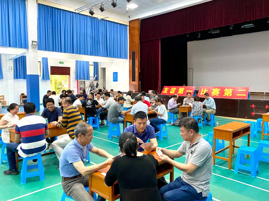 作者:廖想想 发布日期:2021-06-01 浏览:次为丰富教职工业余文化生活,狂人小说 工会于5月28日举办了“中亿丰杯”掼蛋邀请赛,来自各学院、部门的31组选手在江枫礼堂切磋牌艺,比拼智慧。