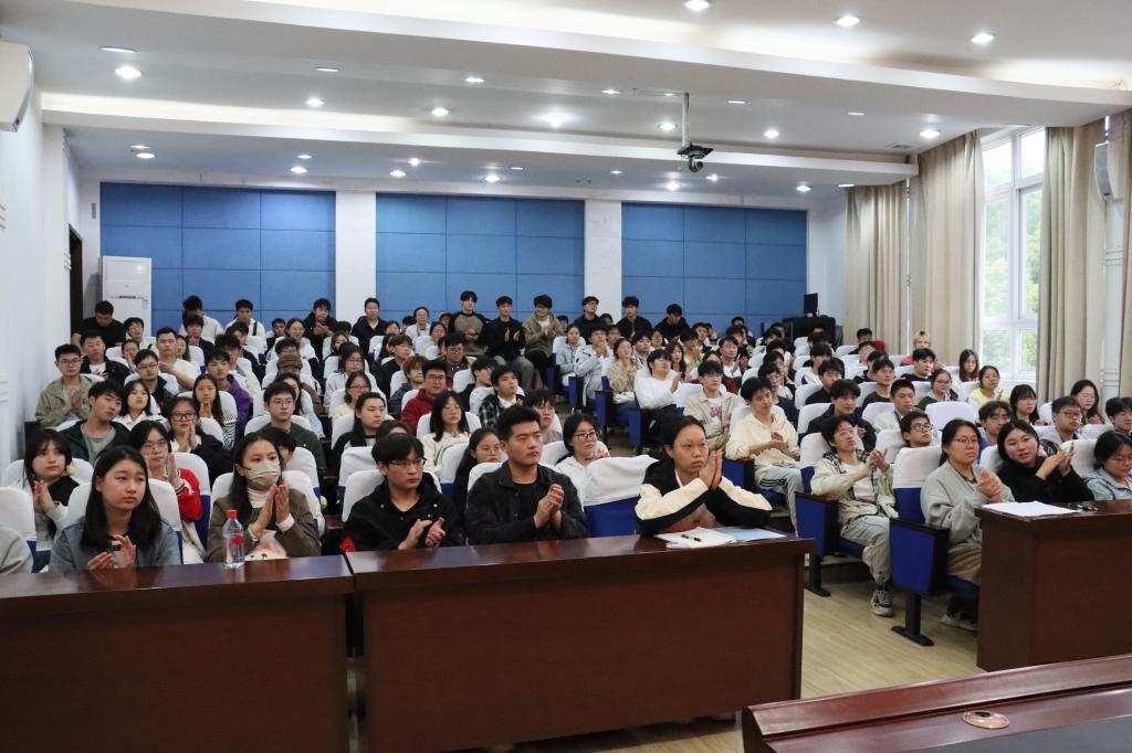 范存新按照强化认识、强化基础、强化制度部署安排,以评估为抓手,以学生为中心,结合本轮本科教育教学审核评估的流程和时间,解读了审核评估的基本原则、指标体系、工作程序,以及具体要求、时间节点和工作安排。围绕《本科教育教学审核评估应知应会手册—学生版》,强调了审核评估基本常识,介绍了学校、学院基本情况。