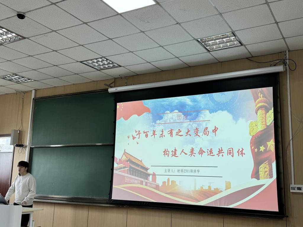 材料2311团支书郑洪宇从俄乌冲突等时事热点话题入手,引导青年学子要胸怀中华民族伟大复兴战略全局和世界百年未有之大变局,将自身发展融入构建人类命运共同体的伟大征程;工管2411团支书陈雨欣号召广大团员青年以亲身之实践,用青春浇灌沃土,做好时代“答卷人”。