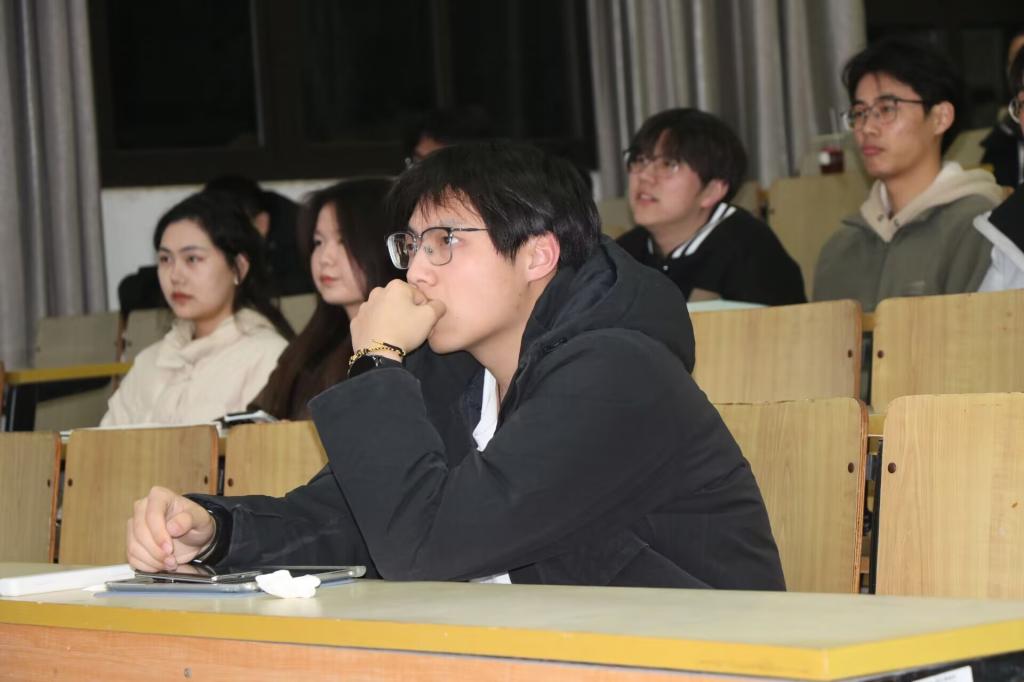 沈峰分别从竞赛目的、发展历程、考试范围等方面为同学们详细介绍了力学竞赛的相关信息。他指出,赛题目类型丰富多样,涵盖理论分析、数值计算、实验设计等多个方面,注重理论与实践相结合,既考查同学们对力学基础知识的掌握程度,又检验大家运用所学知识解决实际问题的能力。他分享了往届的获奖情况,列举了学院在过往竞赛中取得的优异成绩。最后,沈老师耐心解答同学们的问题。