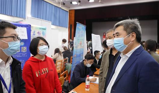 招聘会现场气氛活跃,所有进入场地的人员均佩戴口罩。应届毕业生们积极投递简历参加面试,现场井然有序。毕业生们进行了充分的准备,积极与用人单位工作人员交流探讨,用人单位对同学们的问题进行了耐心的解答。