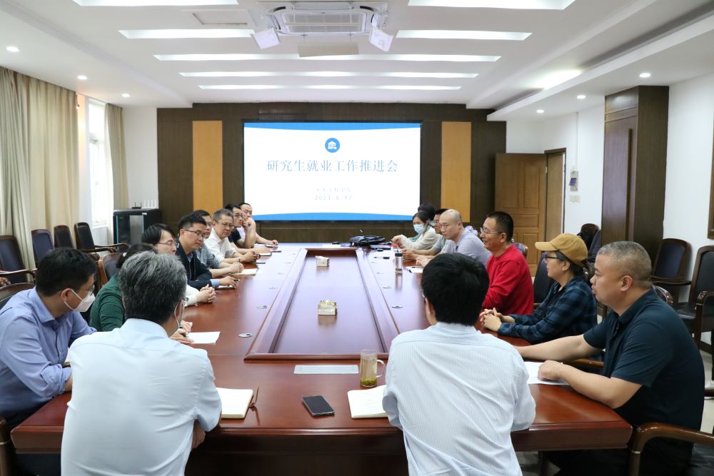 会上,刘建峰介绍了2023届研究生毕业去向的落实情况以及工作推进过程中的难点和痛点。赵宝成分析了当前土建类毕业生就业的严峻形势,号召导师们把就业工作放在学生生涯发展的全局来看,引导学生先就业再择业。刘志强充分肯定了学院就业工作目前所取得的成绩,并对下一阶段工作提出了三点要求,一是广大党员干部要用心用情用力做好高质量就业工作;二是要求牵线搭桥引人才,精准施策促就业;三是要优化毕业生就业服务,为毕业生提供有温度的就业指导。